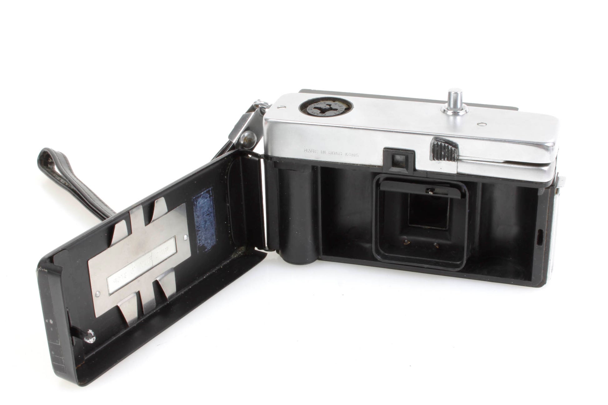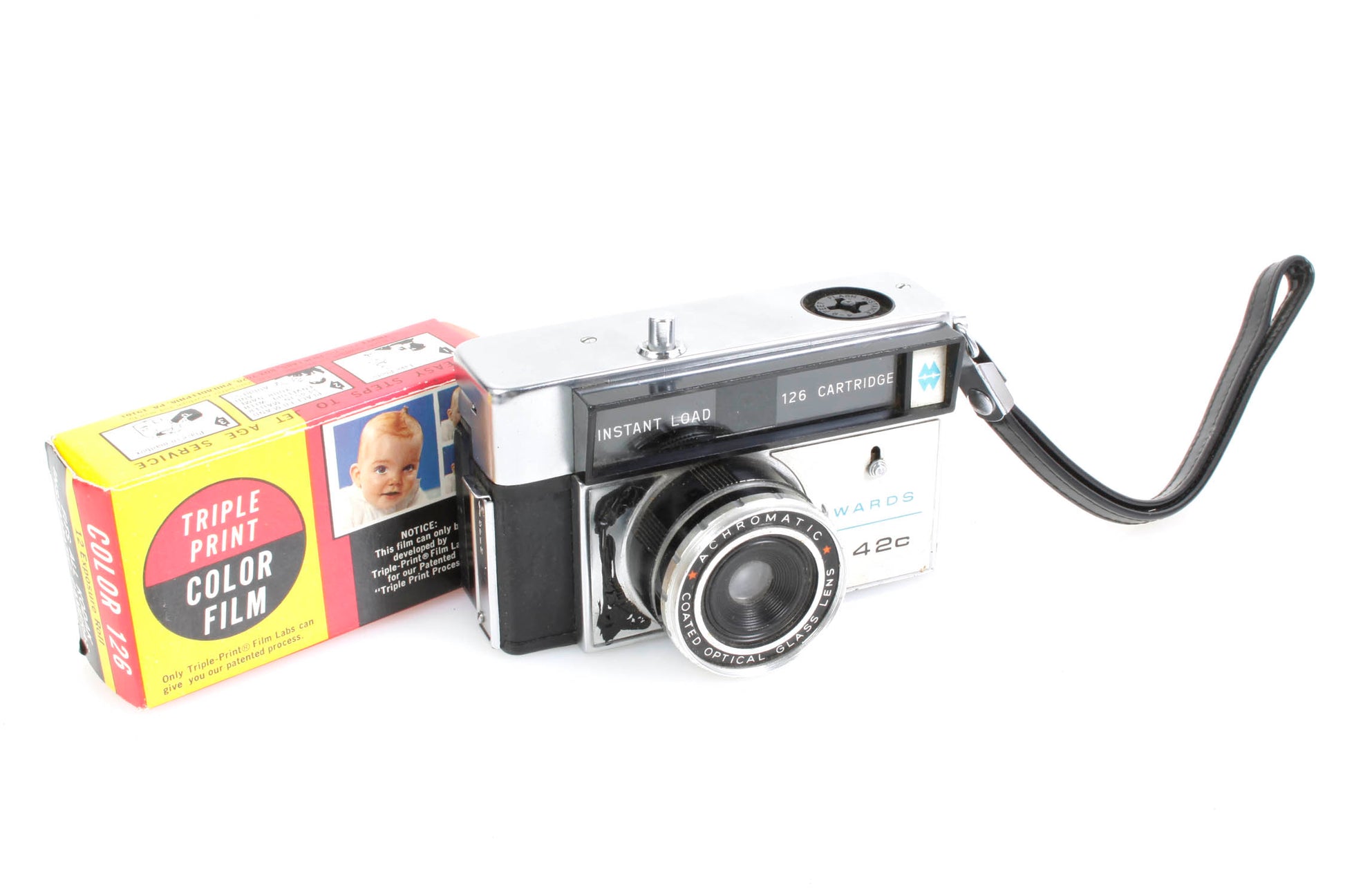 Shutter doesnt fire without film inside. No flash. Camera has some noticeable wear. Film is still in box, expired in 1974, no guarantee on film quality.