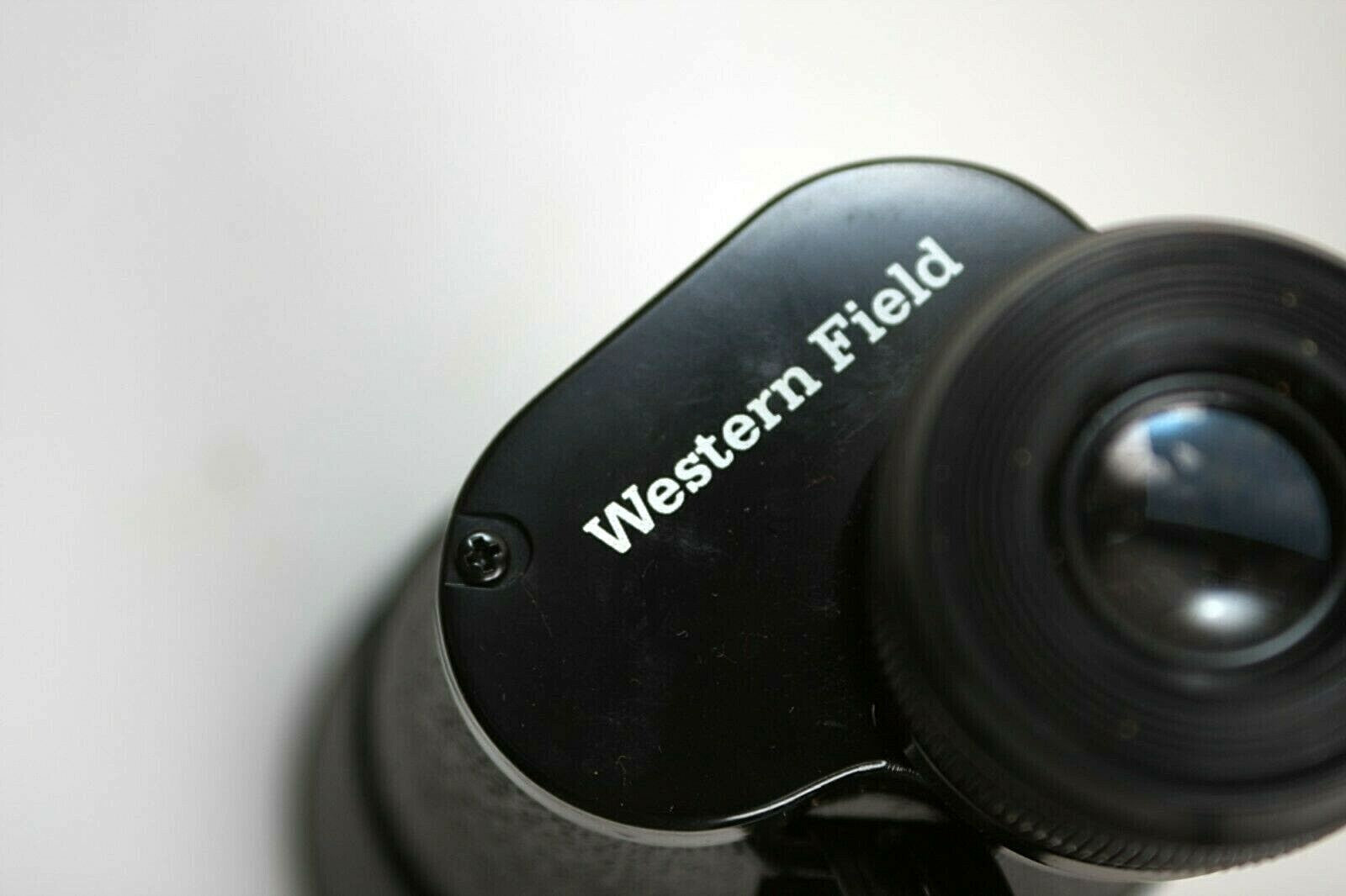 Western Field 7X50 Binoculars #35082 with front lens caps and strap. Excellent cosmetic condition and optics.