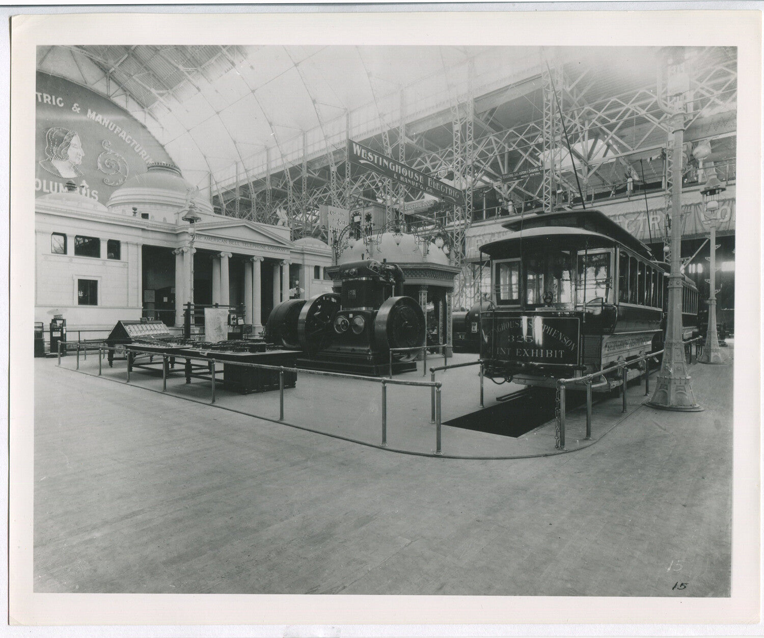 WESTINGHOUSE EXHIBIT, TURBINE, TROLLY. BLACK AND WHITE SILVER PRINT 8 X 10.