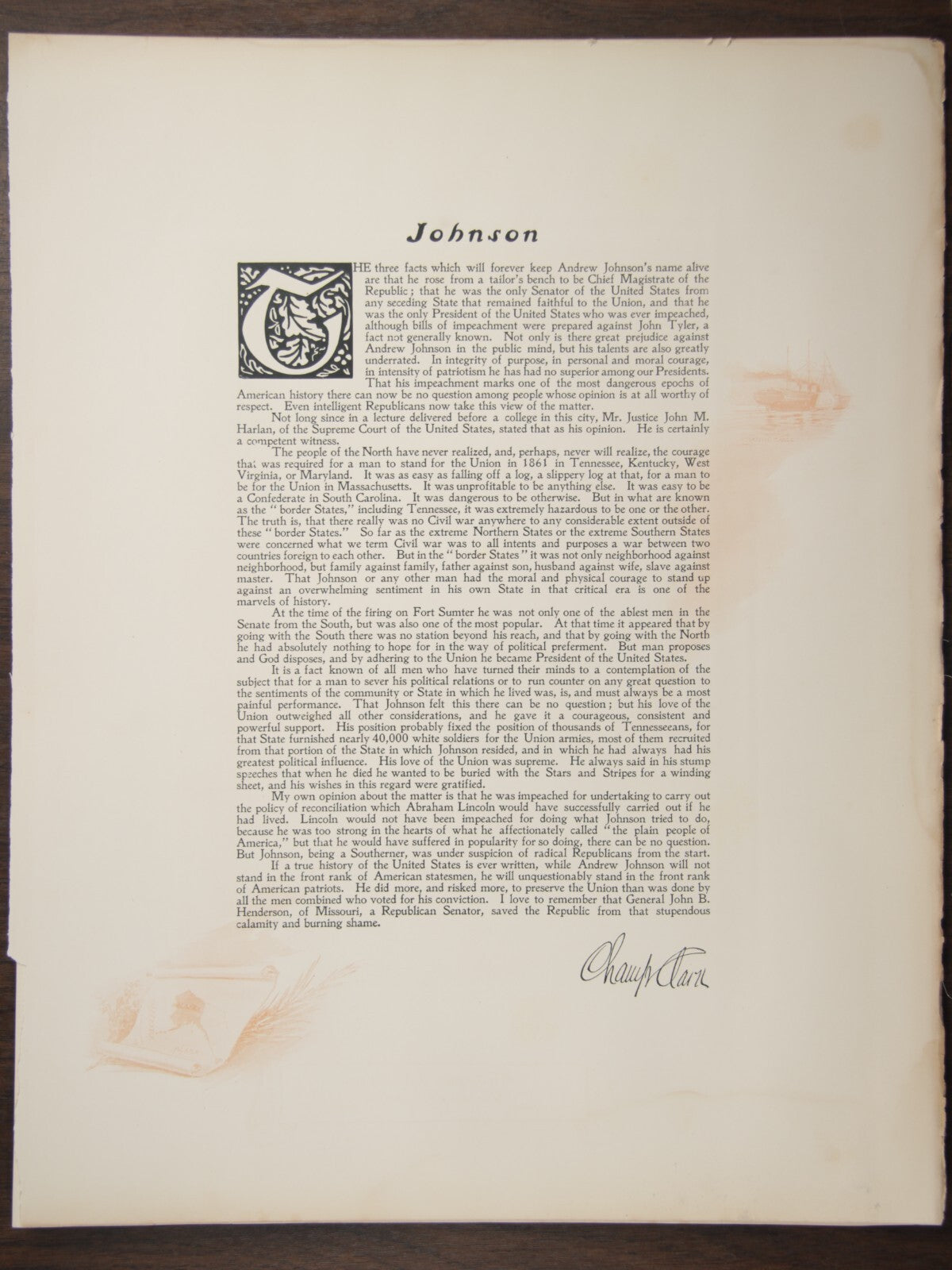WITH WRITTEN DEDICATION TO PRESIDENT JOHNSON BY CHAMP CLARK, Congressman from Missouri