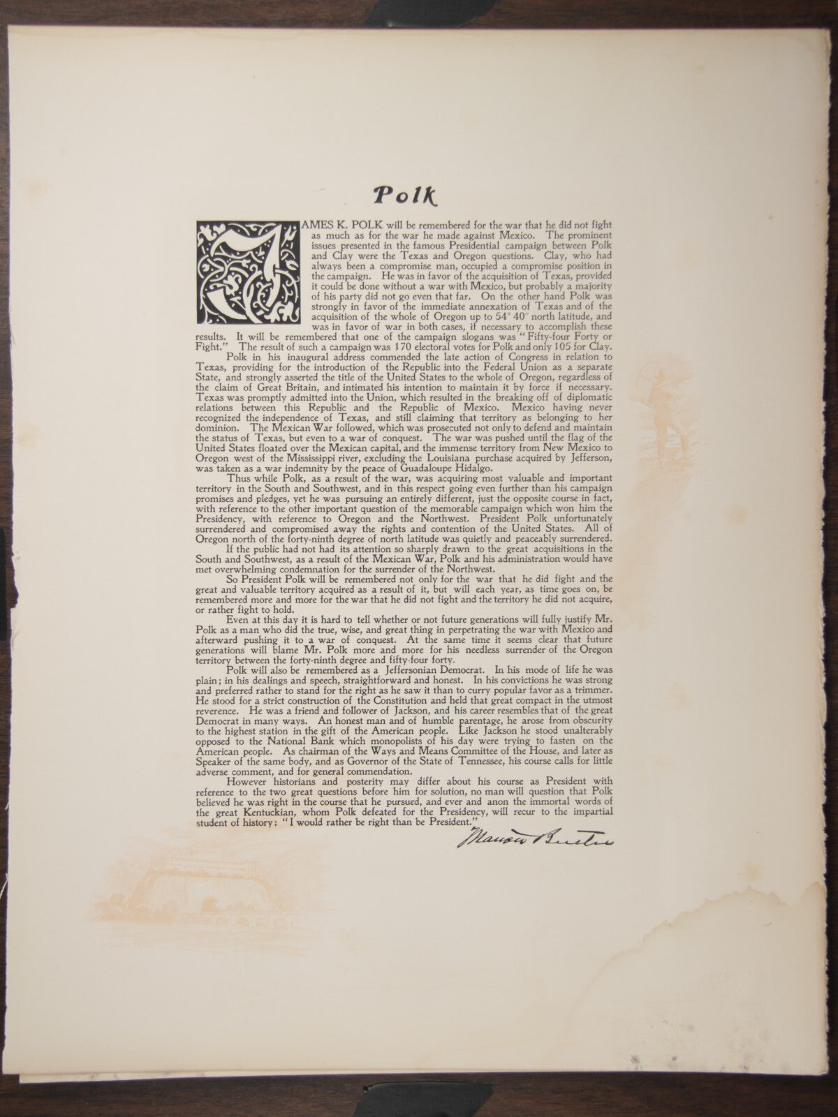 WHITE HOUSE GALLERY VINTAGE PHOTOGRAVURE OF PRESIDENT JAMES K. POLK