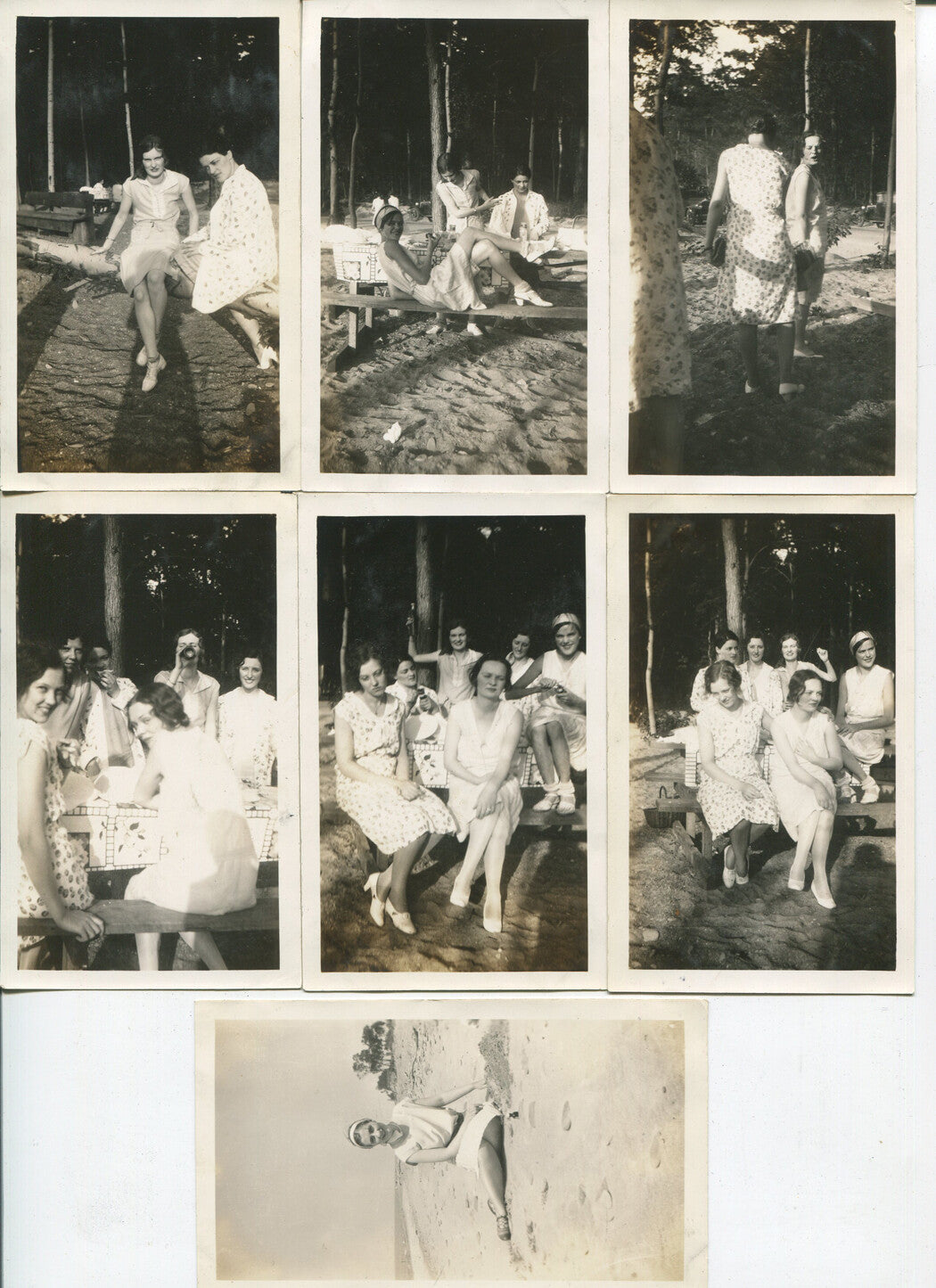 | WOMAN HAVING A PICNIC NEAR THE BEACH. 7 SET B&W PRINTS. 1950s. DIMENSIONS 4.5 X 2.75 INCHES. PHOTOS SHOW WEAR. This item is a guaranteed authentic item as shown from the original time period. NOT a copy. | |