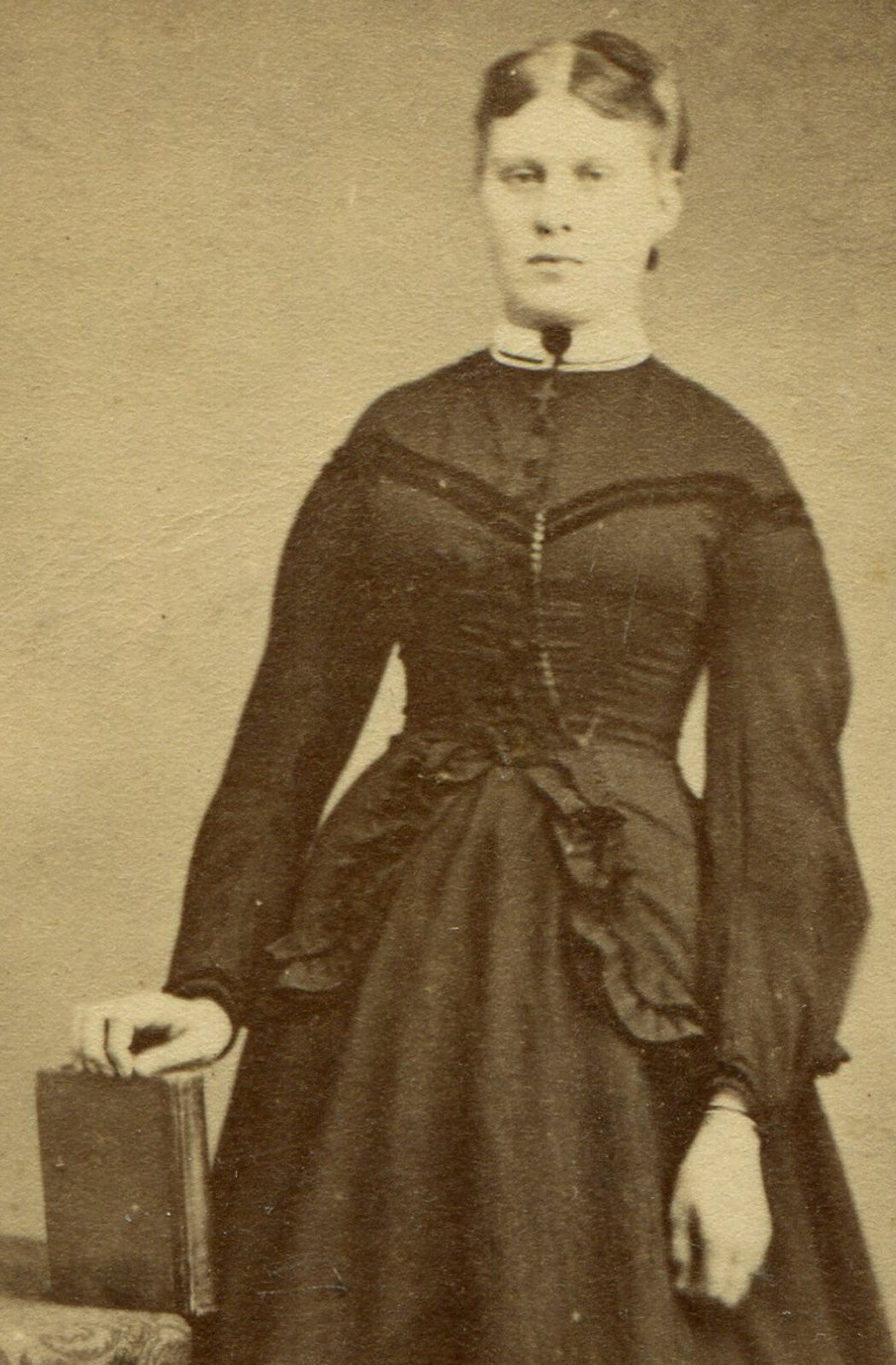 WOMAN STANDING POSE AT TABLE W/BOOK IN HAND. CDV. SELINSGROVE, PA.