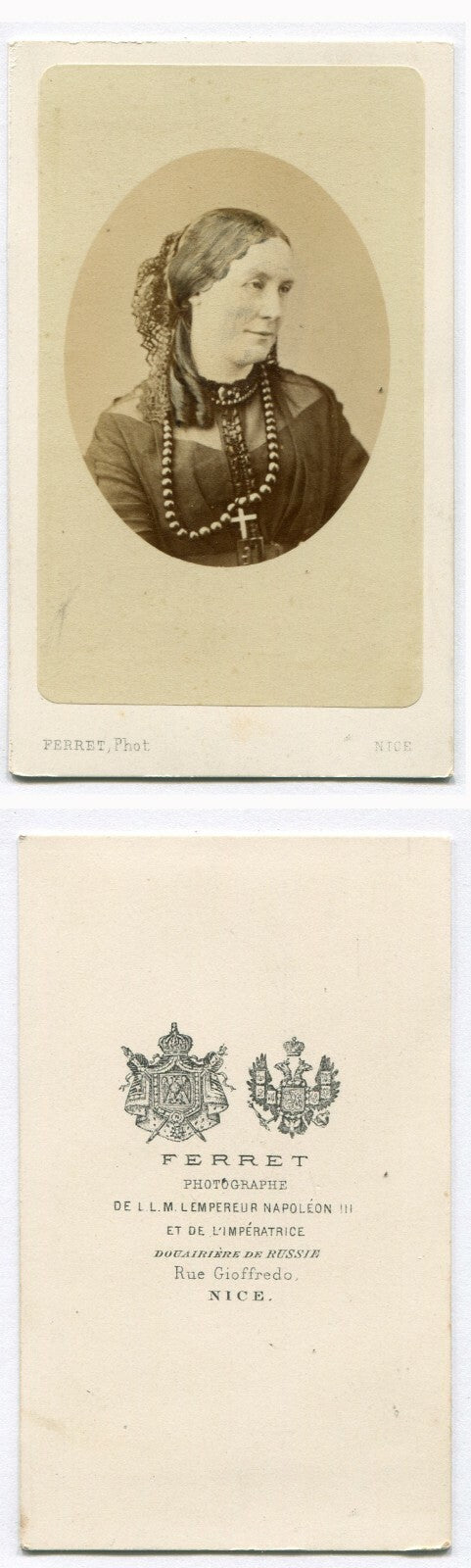 WOMAN W/CHUNKY BEADED NECKLACE AND CRUCIFIX. CDV. NICE, FRANCE.