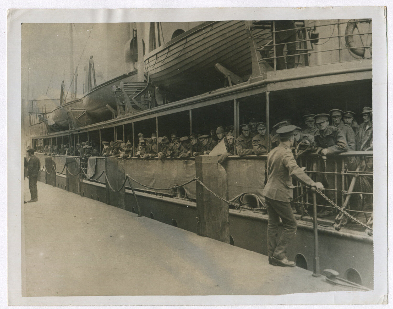 WOUNDED FROM FRANCE ABOARD BRITISH NAVAL SHIP. WWI. (8X10 REPRINT)