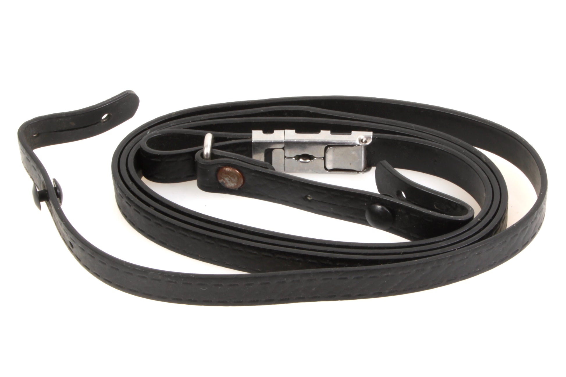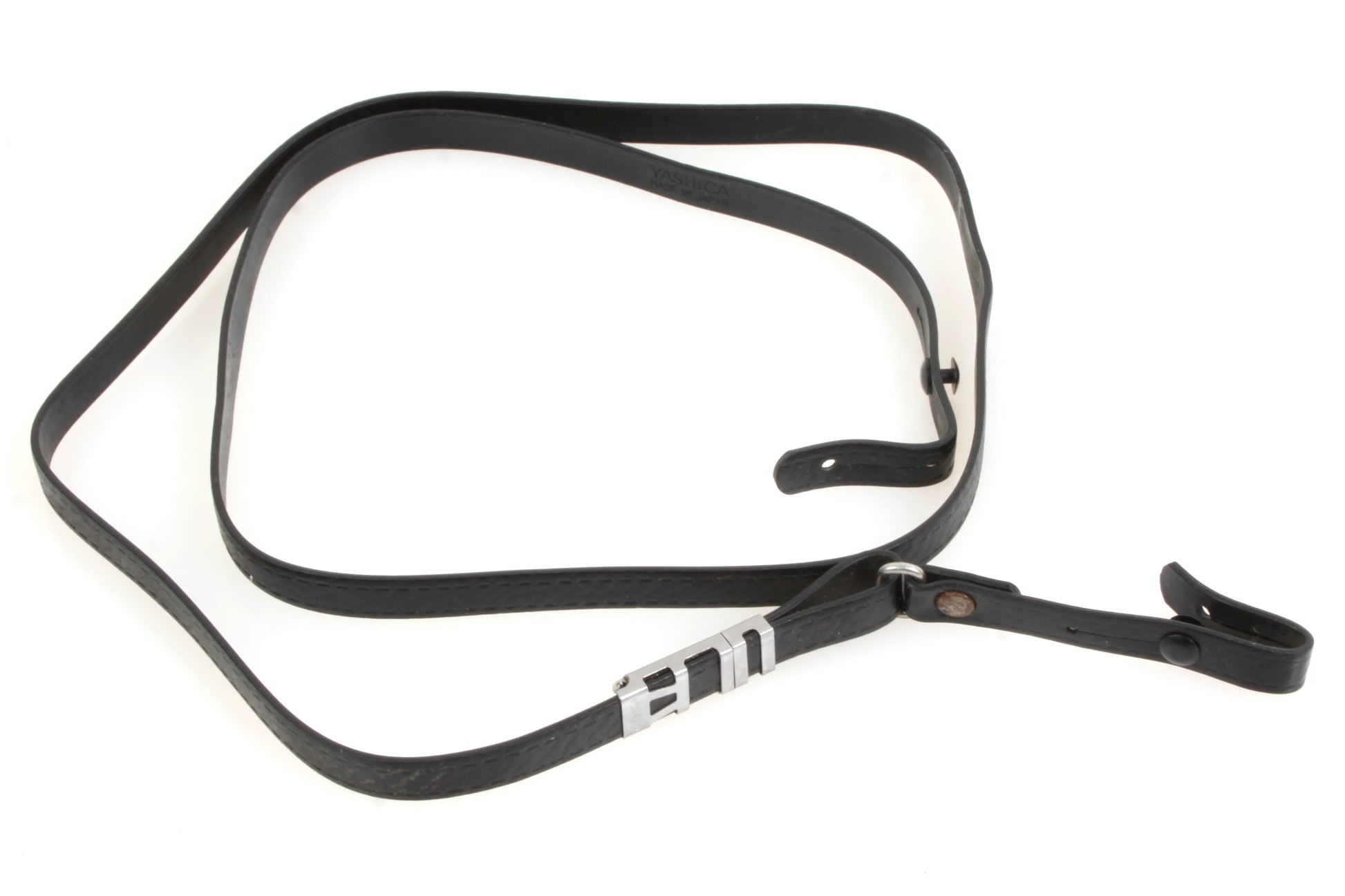 Yashica GSN TL Electro 35 black camera strap. Measures approximately 3/8 inch wide and 41 inches long. In good vintage condition with some general signs of use and some rust to some of the metal parts.