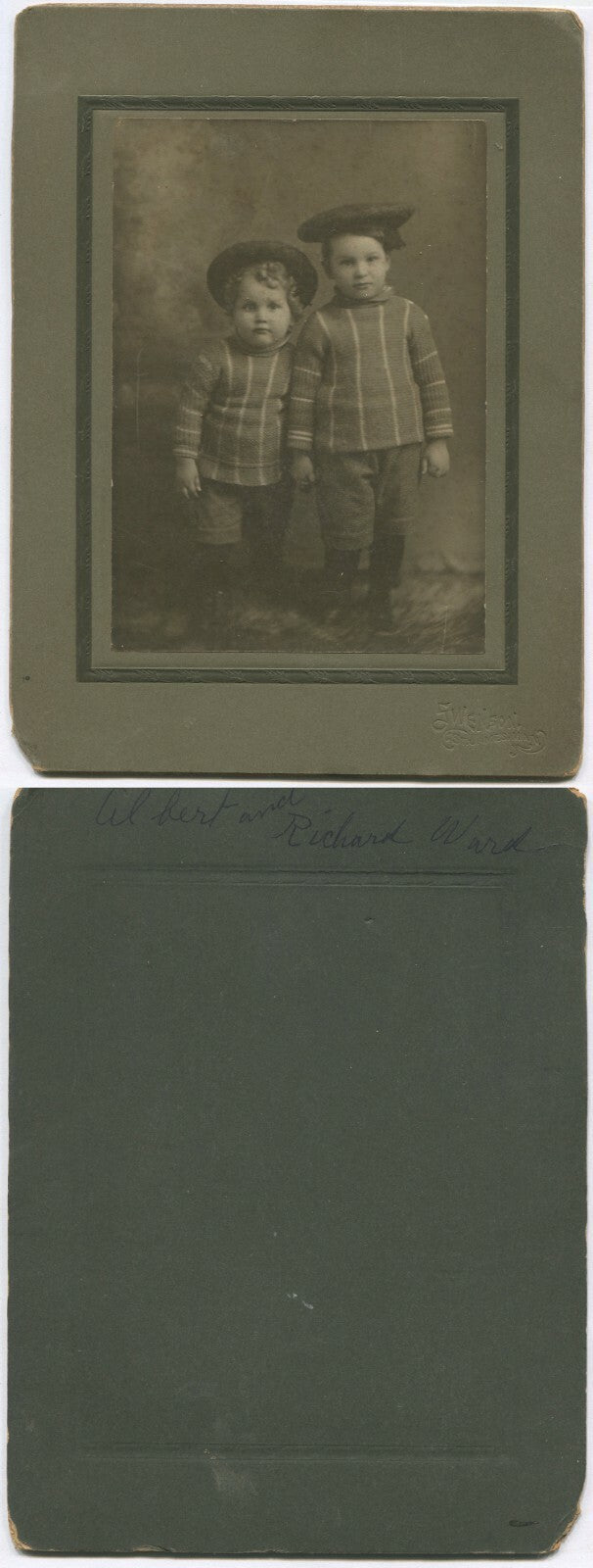 Item in good used vintage condition. NO RETURNS on imagesYOUNG CHILDREN IN MATCHING SWEATERS AND BERETS. TOO CUTE. 6X4 TONED B&W PHOTO ON 8X6 INCH CARD. IMAGE AND CARD SHOW WEAR. This item is a guaranteed authentic photo as shown from the original time period. NOT a copy, an ORIGINAL OLD PHOTO.