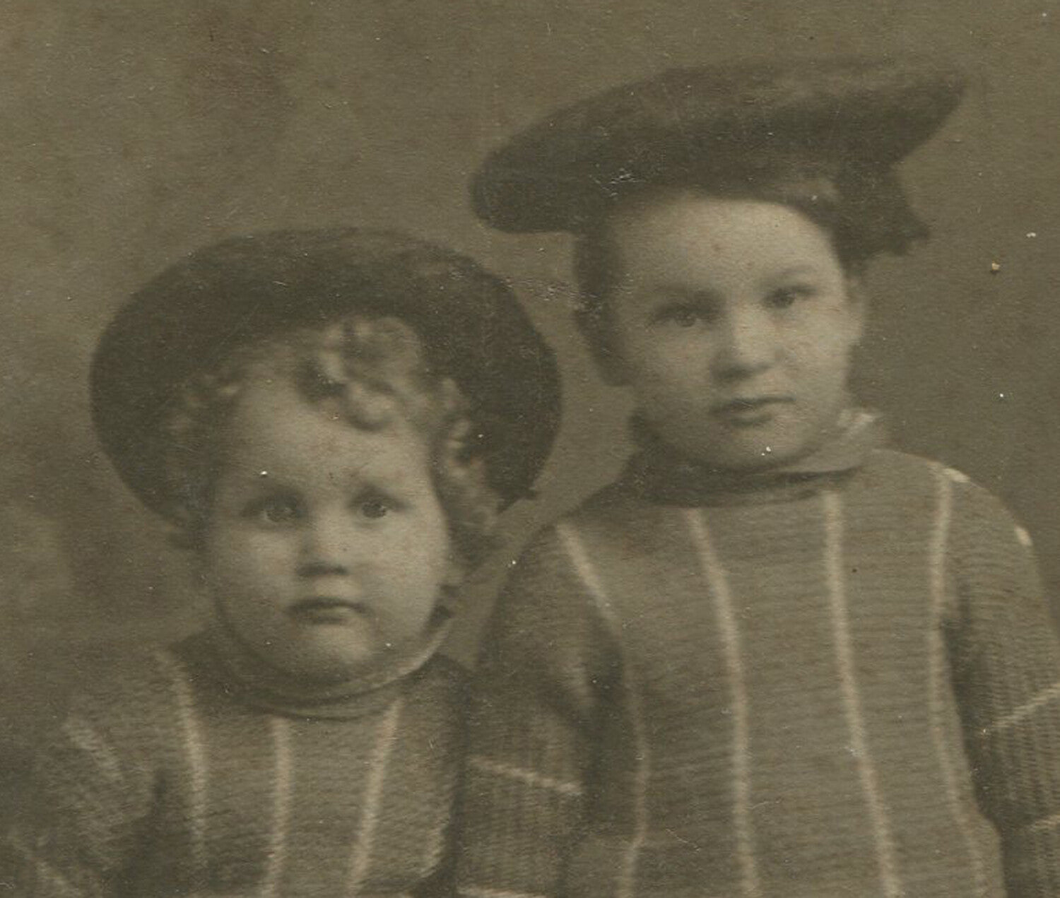 YOUNG CHILDREN IN MATCHING SWEATERS AND BERETS. TOO CUTE. 6X4 TONED B&W PHOTO