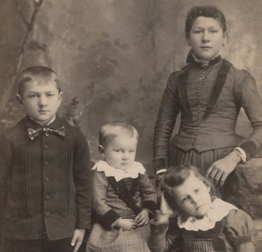 YOUNG SIBLINGS, GAZING THROUGH SUSPICIOUS EYES. VERY INTERESTING. CABINET CARD.
