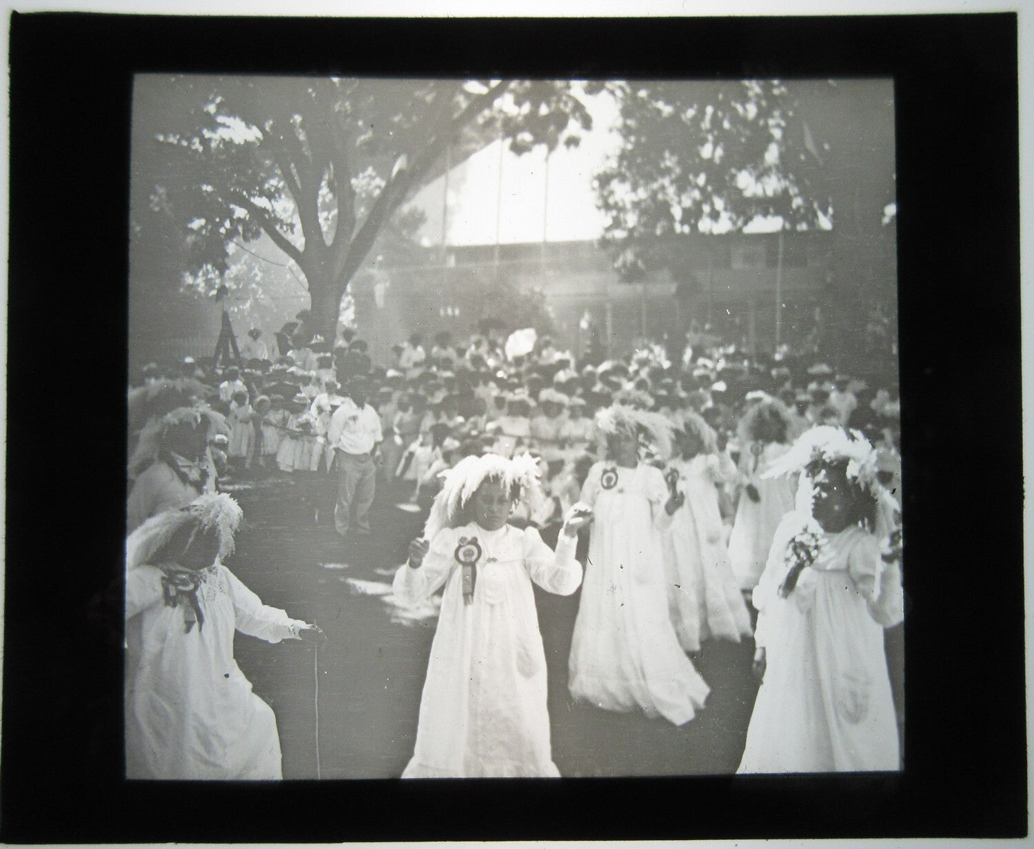 YOUNG WOMEN PARTICIPATE IN CULT CEREMONY. LANTERN SLIDE.