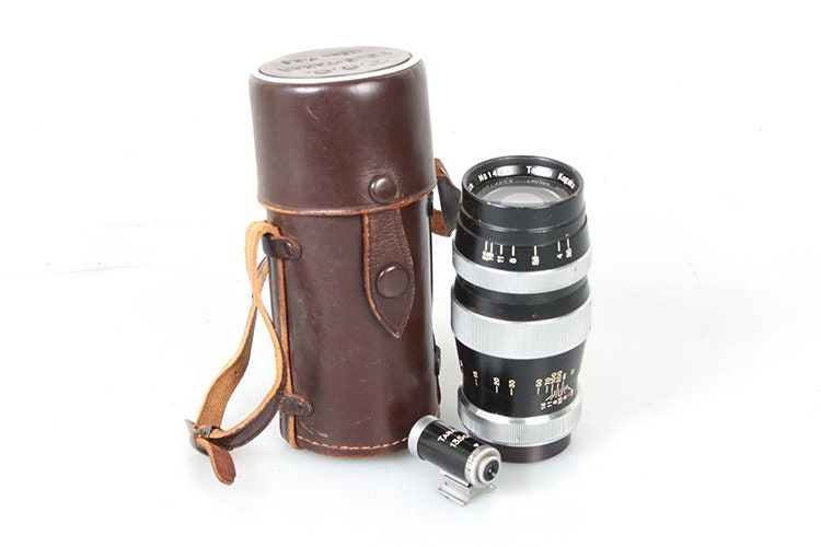 TANAKA KOGAKU TELE-TANAR C. F:3.5 13.5CM LENS. THERE IS SOME DUST PRESENT TO THE LENS BUT NO HAZE OR SCRATCHES. THE BARREL IS IN GOOD COSMETIC CONDITION WITH SOME LIGHT MARKS/SCRATCHES. COMES WITH REAR LENS CAP, BROWN LEATHER CASE, AND FINDER. THE FINDER IS IN VERY GOOD USED CONDITION AND THE LENS LOOKS TO BE FREE OF DUST, HAZE AND SCRATCHES. THE LID OF THE CASE HAS BROKEN OFF THE MAIN BODY.